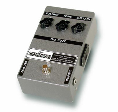 The Pete Cornish G-2 Fuzz has been hailed as the most original sounding distortion unit available to guitarists in the Rock Arena. It has a four stage overdriven discrete transistor circuit with additional Germanium components that generate much warmer sounding harmonics than anything else on the market. Within the huge tone generated by this unit, the original guitar sound and dynamics are present, creating a much more musical effect than any other "fuzz pedal".